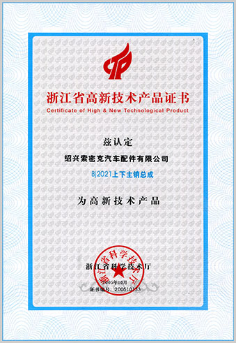公司已先后通過IATF16949質量管理體系認證、ISO/14001環境管理體系認證和OHSAS18001職業健康安全管理體系認證。是“國家高新技術企業”“行業龍頭企業”和“全國百家優秀汽車零部件供應商”。
